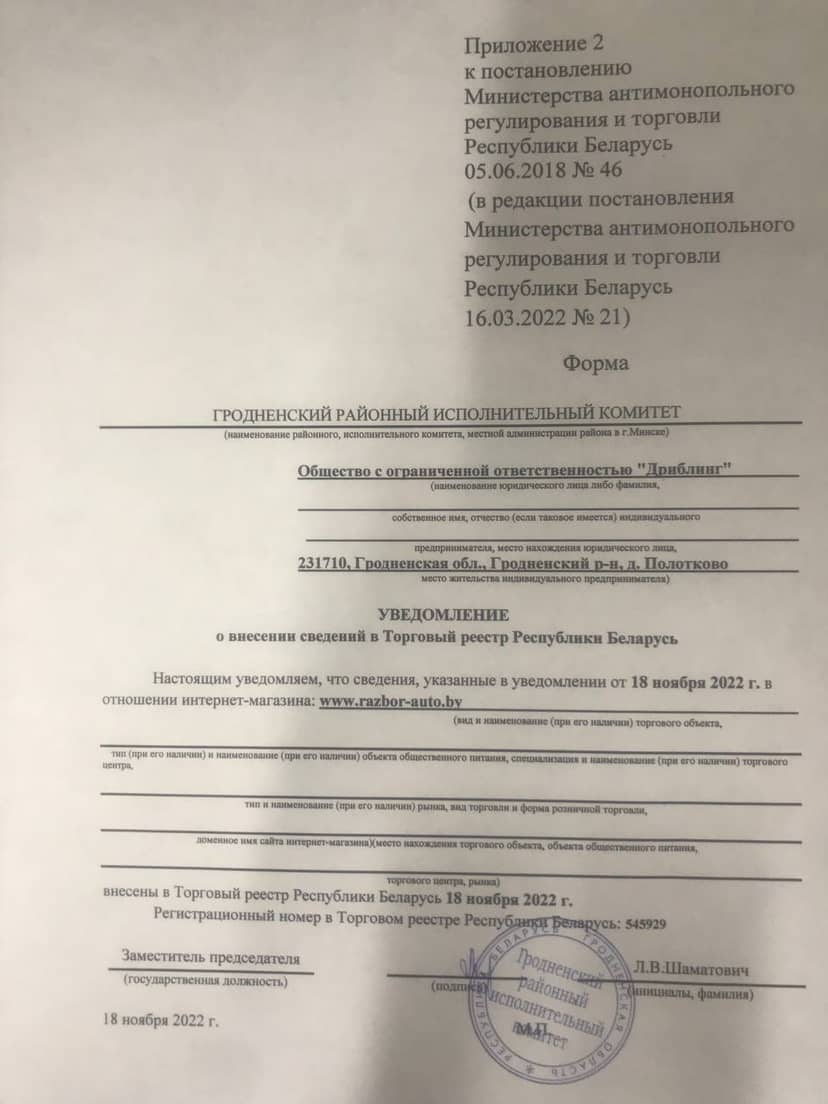 До сих пор сомневаетесь в необходимости приобретения новых запчастей для своего “железного друга”? Отбросьте все сомнения и смело обращайтесь к команде профессионалов проекта “Дриблинг” в Гродно. Если не можете определиться, то вам обязательно помогут в этом вопросе. Не знаете, что точно подойдет или не подойдет? Не беспокойтесь, ведь все запчасти выдаются с соответствующей документацией (факты наличия, продажи, проверки, приема) и поэтому обменять их не составит труда.C УВАЖЕНИЕМ, МАГАЗИН Б/У ЗАПЧАСТЕЙ ДЛЯ АВТОМОБИЛЯ.